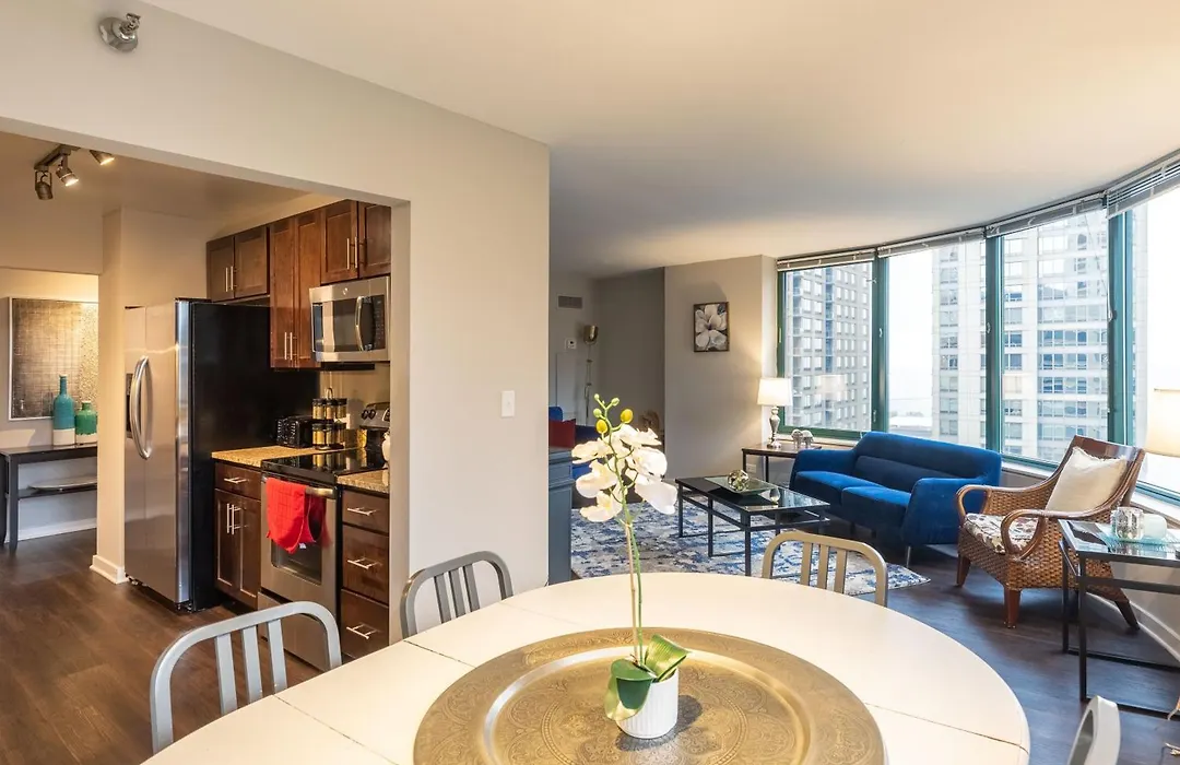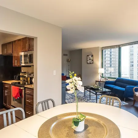 Het appartement beschikt over een keuken, die een magnetron, een vaatwasser en een wasmachine verleent.Navy Pier Terminal bushalte is op 850 meter afstand ervandaan en LaSalle "L" (Blue Line) metrostation ligt binnen 20-minuten wandelafstand.